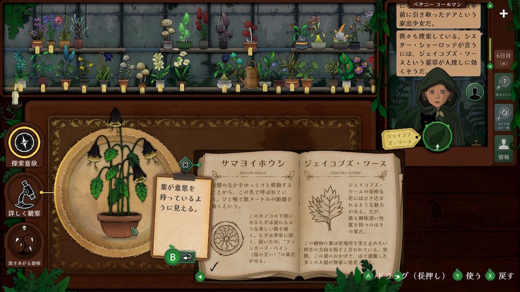 そのため、人捜しに役立つという「ジェイコブズ・ワース」という薬草を求めているようです。
